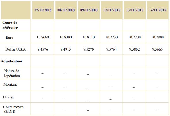 Au cours de cette période, aucune opération d’adjudication n’a été réalisée sur le marché des changes.