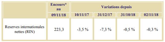 Les réserves internationales nettes (RIN) ont accusé, d’une semaine à l’autre, une diminution de 0,3% pour revenir à 223,3 MMDH, au 9 novembre 2018.