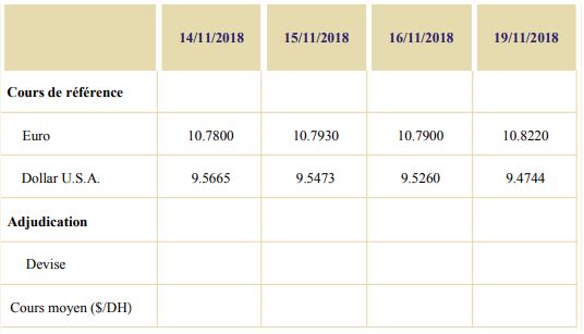 Entre le 15 et le 19 novembre, le dirham s’est déprécié de 0,39% par rapport à l’euro, passant de 10,7800 à 10,8220 dirhams pour un euro, selon le dernier bulletin des indicateurs hebdomadaires publié par Bank Al Maghrib.