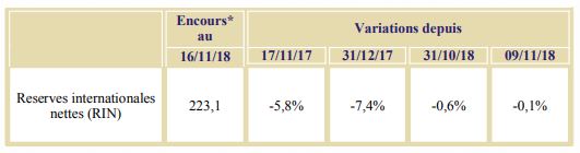 Au 16 novembre 2018, les réserves internationales nettes (RIN) sont restées, d’une semaine à l’autre, quasiment inchangées à 223,1 MMDH.