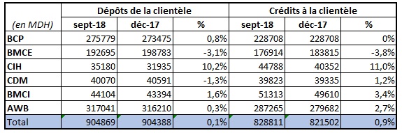 Il convient de noter que ces évolutions cachent une dynamique commerciale de CIH Bank dépassant largement celle des autres. A fin septembre 2018, les dépôts de la clientèle et les crédits accordés se sont hissés de 10,2% et de 11% respectivement.
