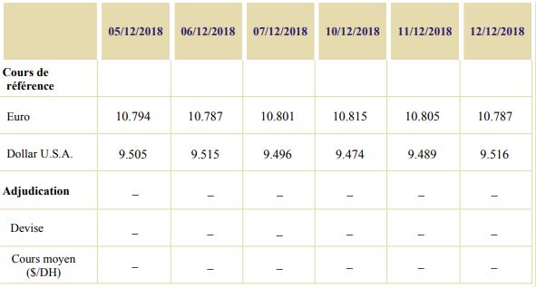 Au cours de cette période, aucune opération d’adjudication n’a été réalisée sur le marché des changes.
