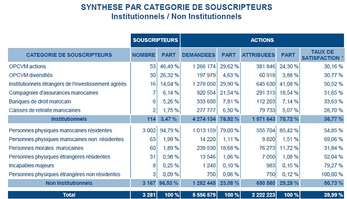 En termes de types d’investisseurs, les résultats de l’opération se déclinent comme suit: