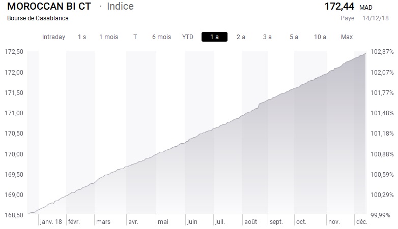 Ci-dessous l'évolution du Moroccan Bond Index CT (1 an):