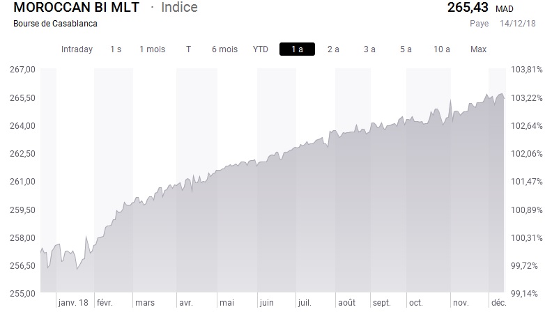 Ci-dessous l'évolution du Moroccan Bond Index MLT (1 an):