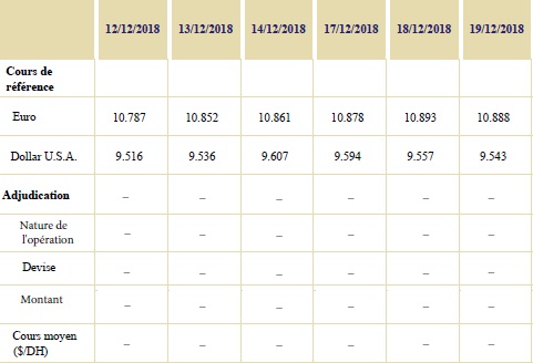 Au cours de cette période, aucune opération d’adjudication n’a été réalisée sur le marché des changes.