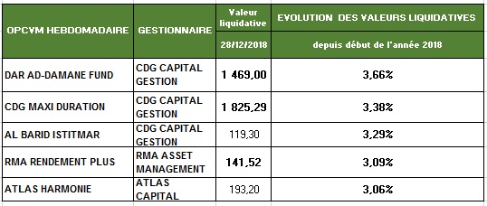 Pour les OPCVM OMLT, la performance a été tirée principalement par 5 fonds gérés par CDG Capital Gestion, RMA Asset Management et Atlas Capital. La performance des OPCVM OMLT oscillait globalement à l’intérieur d’une fourchette comprise entre -4,78% et 3,66%.
