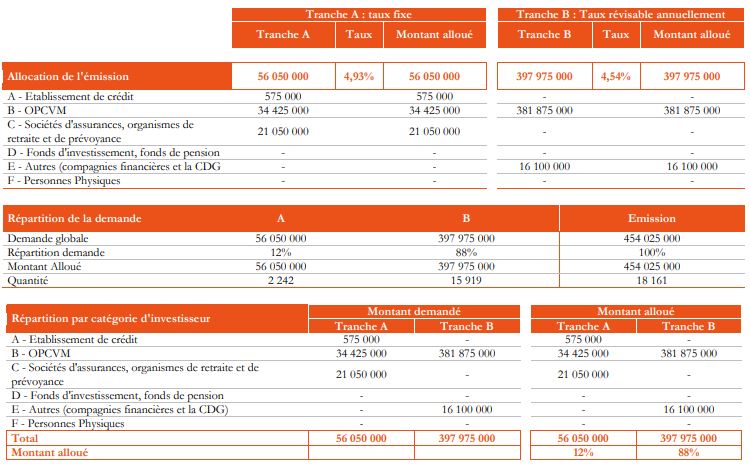 > Une tranche A à taux fixe et négociable de gré à gré (non cotée) avec une prime de risque de 300 points de base.