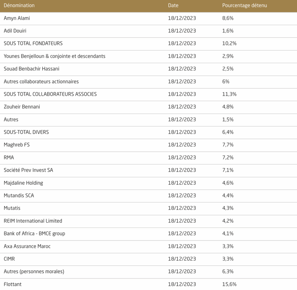 « Nous prévoyons une évolution de 15% par an sur la période 2023-2027 pour approcher les 3 MMDH. Après cette opération d’introduction en bourse par augmentation de capital, ils devraient se situer fin 2023 à 1,7 MMDH environ », expliquait Souad Benbachir, directrice générale du groupe lors de la conférence annonçant l’IPO du groupe, fin novembre.