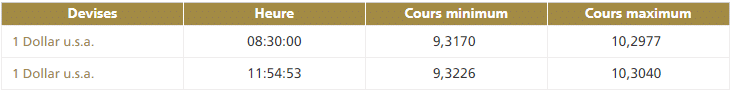 Ce jeudi 5 septembre vers 8h30, la première cotation centrale USD/MAD de la journée, telle que publiée par Bank Al-Maghrib (BAM), fait ressortir la bande de fluctuation suivante : Ci-après...