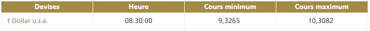 Ce mardi 10 septembre vers 8h30, la première cotation centrale USD/MAD de la journée, telle que publiée par Bank Al-Maghrib (BAM), fait ressortir la bande de fluctuation suivante : Ci-après...