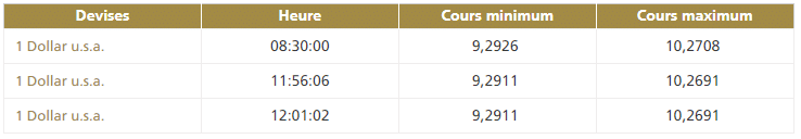 Ce mardi 24 septembre vers 8h30, la première cotation centrale USD/MAD de la journée, telle que publiée par Bank Al-Maghrib (BAM), fait ressortir la bande de fluctuation suivante : Ci-après...