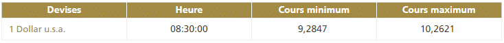 Ce mardi 24 septembre vers 8h30, la première cotation centrale USD/MAD de la journée, telle que publiée par Bank Al-Maghrib (BAM), fait ressortir la bande de fluctuation suivante :
