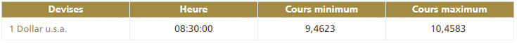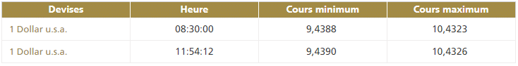 Ce mercredi 23 octobre vers 8h30, la première cotation centrale USD/MAD de la journée, telle que publiée par Bank Al-Maghrib fait ressortir la bande de fluctuation suivante : Ci-après la...