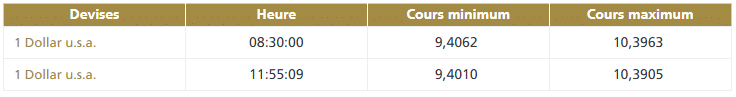 Ce mardi 5 novembre vers 8h30, la première cotation centrale USD/MAD de la journée, telle que publiée par Bank Al-Maghrib fait ressortir la bande de fluctuation suivante :