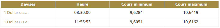 Ce mercredi 27 novembre vers 8h30, la première cotation centrale USD/MAD de la journée, telle que publiée par Bank Al-Maghrib (BAM), fait ressortir la bande de fluctuation suivante : Ci-après...