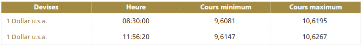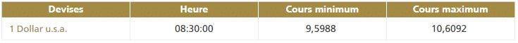Ce jeudi 5 décembre vers 8h30, la première cotation centrale USD/MAD de la journée, telle que publiée par Bank Al-Maghrib (BAM), fait ressortir la bande de fluctuation suivante : Ci-après...