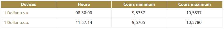 Ce lundi 9 décembre vers 8h30, la première cotation centrale USD/MAD de la journée, telle que publiée par Bank Al-Maghrib (BAM), fait ressortir la bande de fluctuation suivante : Ci-après...