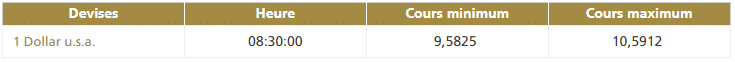 Ce mardi 10 décembre vers 8h30, la première cotation centrale USD/MAD de la journée, telle que publiée par Bank Al-Maghrib (BAM), fait ressortir la bande de fluctuation suivante :