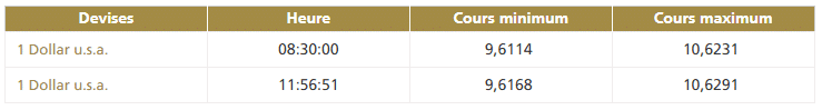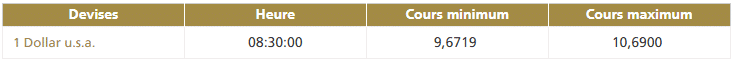 Ce jeudi 19 décembre vers 8h30, la première cotation centrale USD/MAD de la journée, telle que publiée par Bank Al-Maghrib (BAM), fait ressortir la bande de fluctuation suivante : Ci-après...