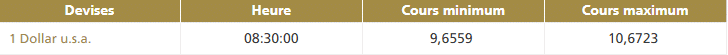 Ce lundi 30 décembre vers 8h30, la première cotation centrale USD/MAD de la journée, telle que publiée par Bank Al-Maghrib (BAM), fait ressortir la bande de fluctuation suivante : Ci-après...