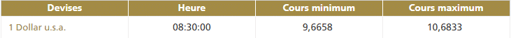 Ce mardi 31 décembre vers 8h30, la première cotation centrale USD/MAD de la journée, telle que publiée par Bank Al-Maghrib (BAM), fait ressortir la bande de fluctuation suivante : Ci-après...