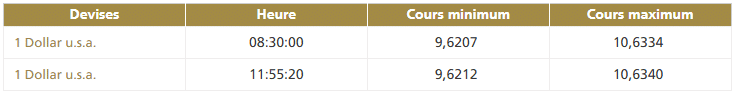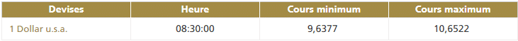 Ce mardi 18 février vers 8h30, la première cotation centrale USD/MAD de la journée, telle que publiée par Bank Al-Maghrib (BAM), fait ressortir la bande de fluctuation suivante :