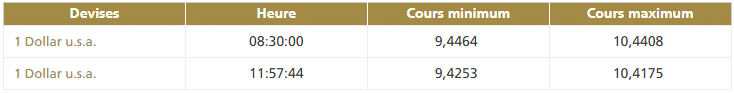 Ce mardi 11 mars vers 8 h 30, la première cotation centrale USD/MAD de la journée, telle que publiée par Bank Al-Maghrib (BAM), fait ressortir la bande de fluctuation suivante :