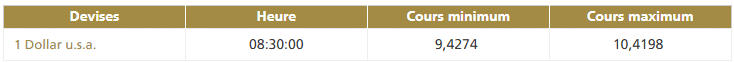 Ce vendredi 14 mars vers 8 h 30, la première cotation centrale USD/MAD de la journée, telle que publiée par Bank Al-Maghrib (BAM), fait ressortir la bande de fluctuation suivante :