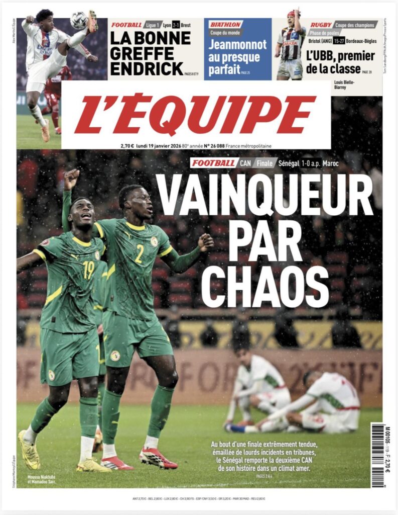 Du côté de la presse sénégalaise, notamment Seneweb, l’analyse insiste sur le sentiment d’injustice arbitrale ressenti par les joueurs, expliquant – sans forcément la justifier – la réaction collective observée sur la pelouse. Plusieurs titres évoquent un moment de rupture émotionnelle, rare à ce niveau de compétition, qui a profondément marqué l’image de la finale.