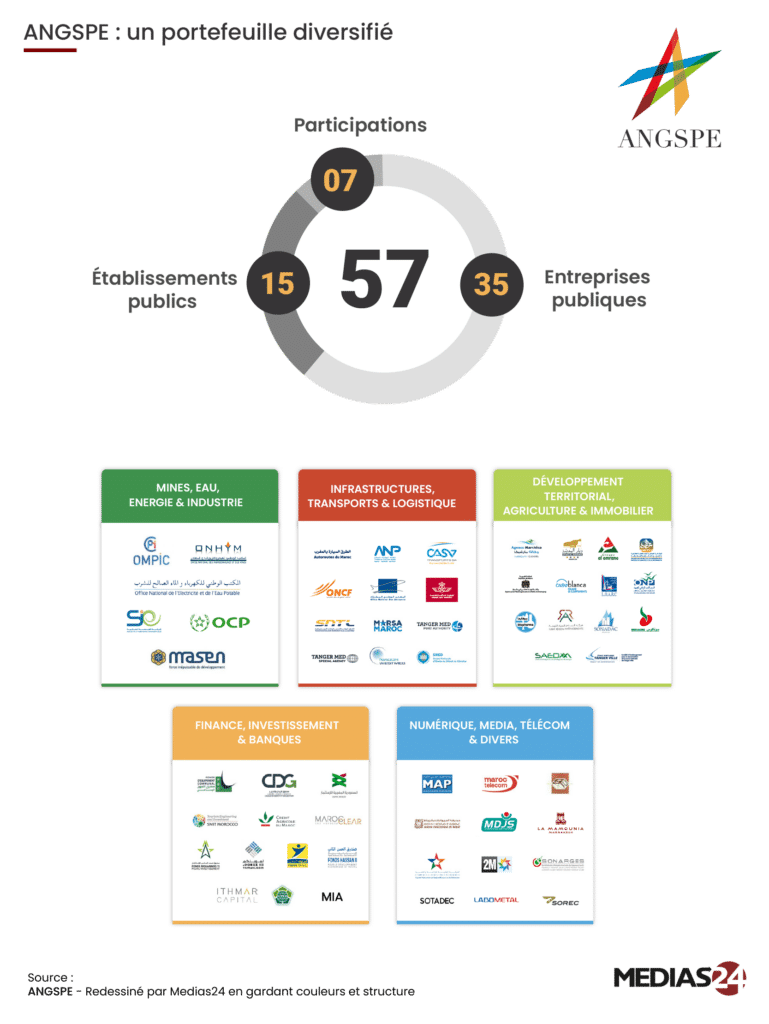 La loi cadre n° 50.21 prévoit que l’État actionnaire prendra les mesures nécessaires pour transférer progressivement, en pleine propriété, ces participations à l’Agence. On s’achemine vers une holding, dont les filiales seront les établissements et entreprises publics — les 57 EEP relevant du périmètre de l’ANGSPE.