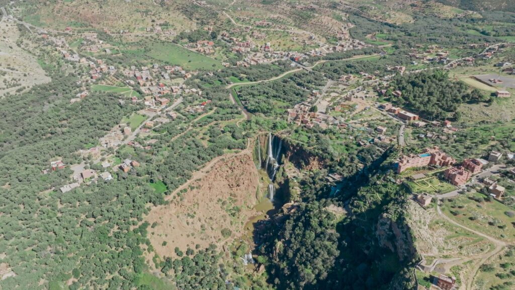 Vue aérienne des cascades d’Ouzoud. Ph : CRT Béni Mellal